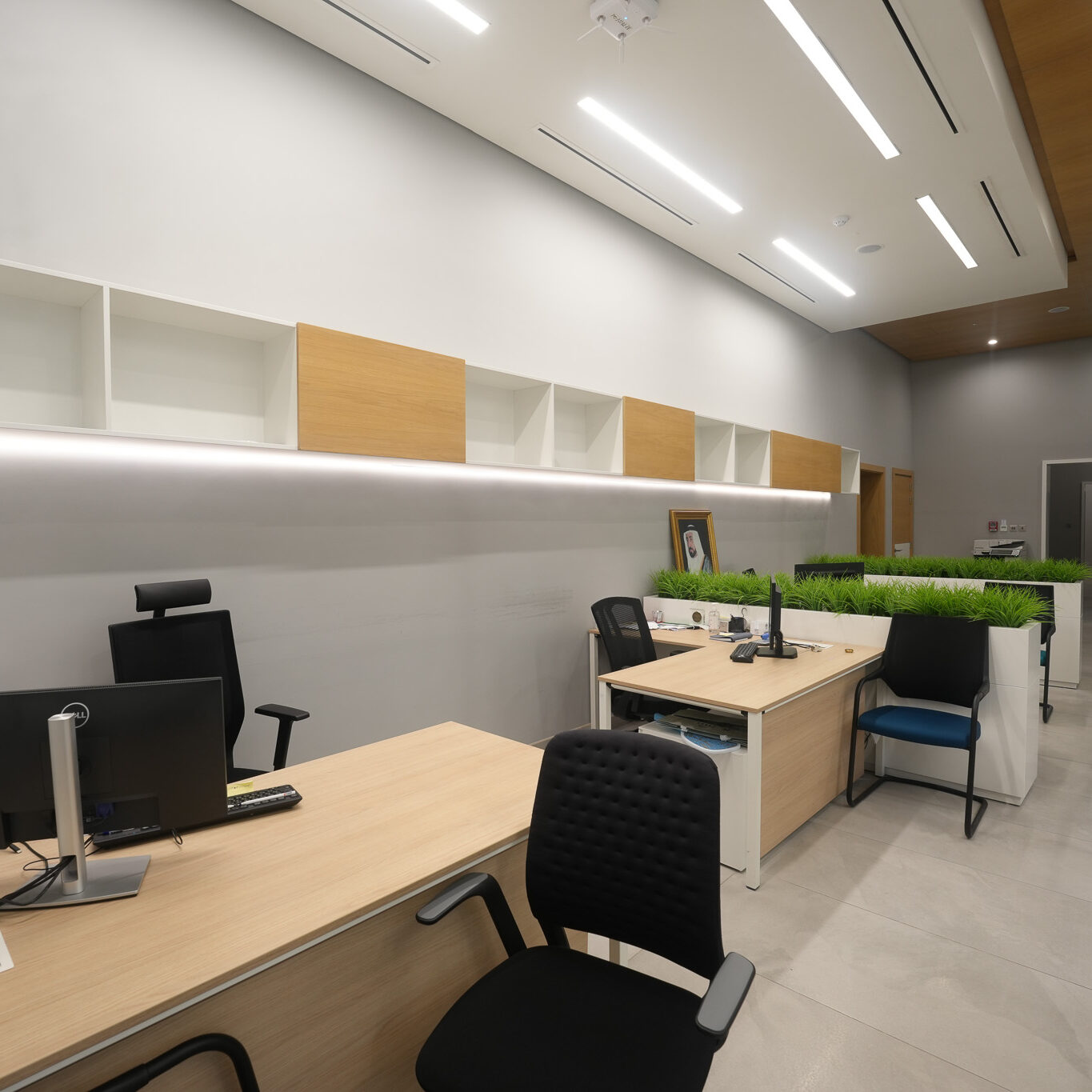 The DOP Offices project embodies a sophisticated blend of functionality, aesthetics, and modern workplace innovation. Designed to foster productivity and collaboration, this fit-out project transforms the office into a seamless fusion of elegance and efficiency.