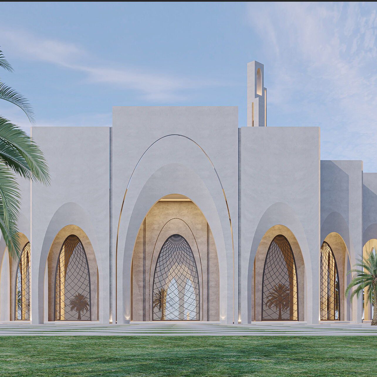 The mosque embodies classical architectural elements Inspired by Islamic architecture. The architecture reflects a contemporary approach with influences from organic and sustainable design principles, emphasizing fluidity and natural integration.