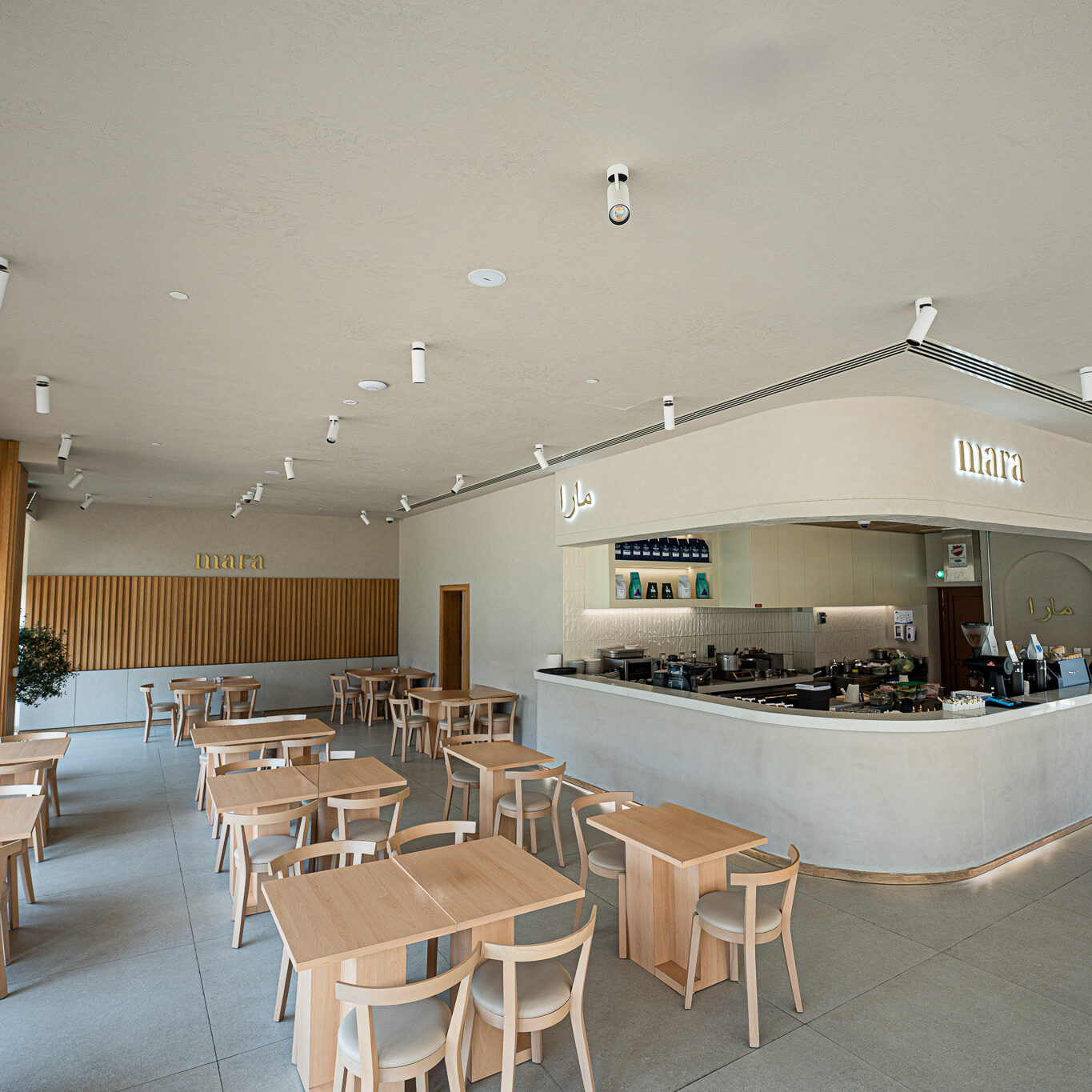 In the serene landscape of Hafiya Lake, Mara Café embodies minimalism and warmth through its natural materials and soft lighting. Designed to harmonize with its surroundings, the space features a seamless blend of wood textures, neutral tones, and modern elegance, creating a tranquil yet inviting ambiance. With panoramic views of the lake and mountains, Mara Café offers a refined dining experience where nature and design come together in perfect balance.