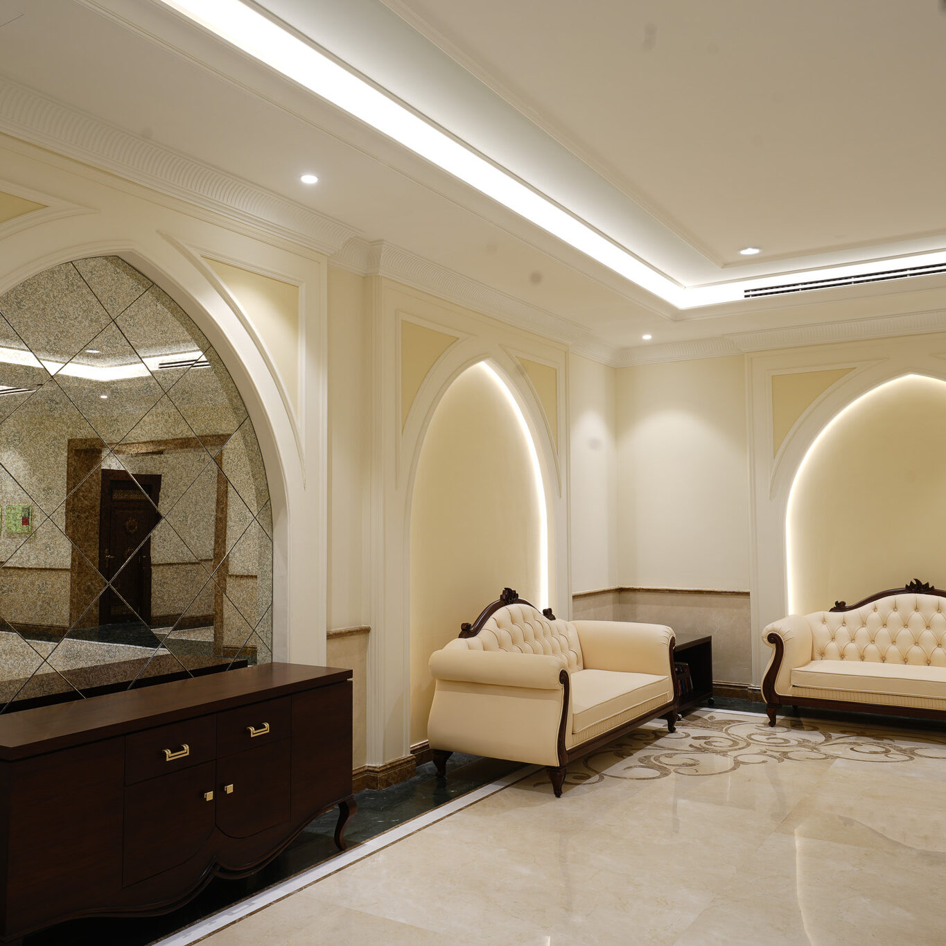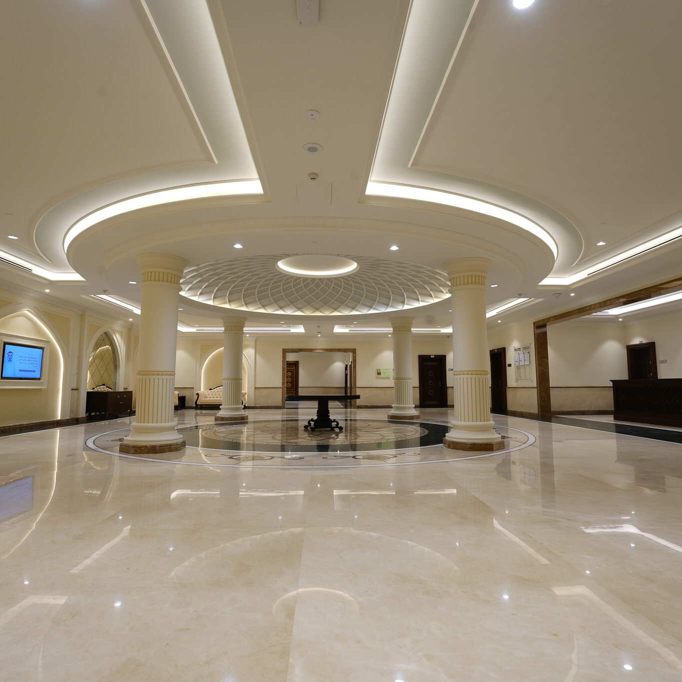 project showcases a refined blend of classical and contemporary interior design, focusing on elegance, functionality, and a premium aesthetic. The interiors emphasize symmetry, high-end materials, and a sophisticated lighting system, enhancing the university’s stature as a premier academic institution.